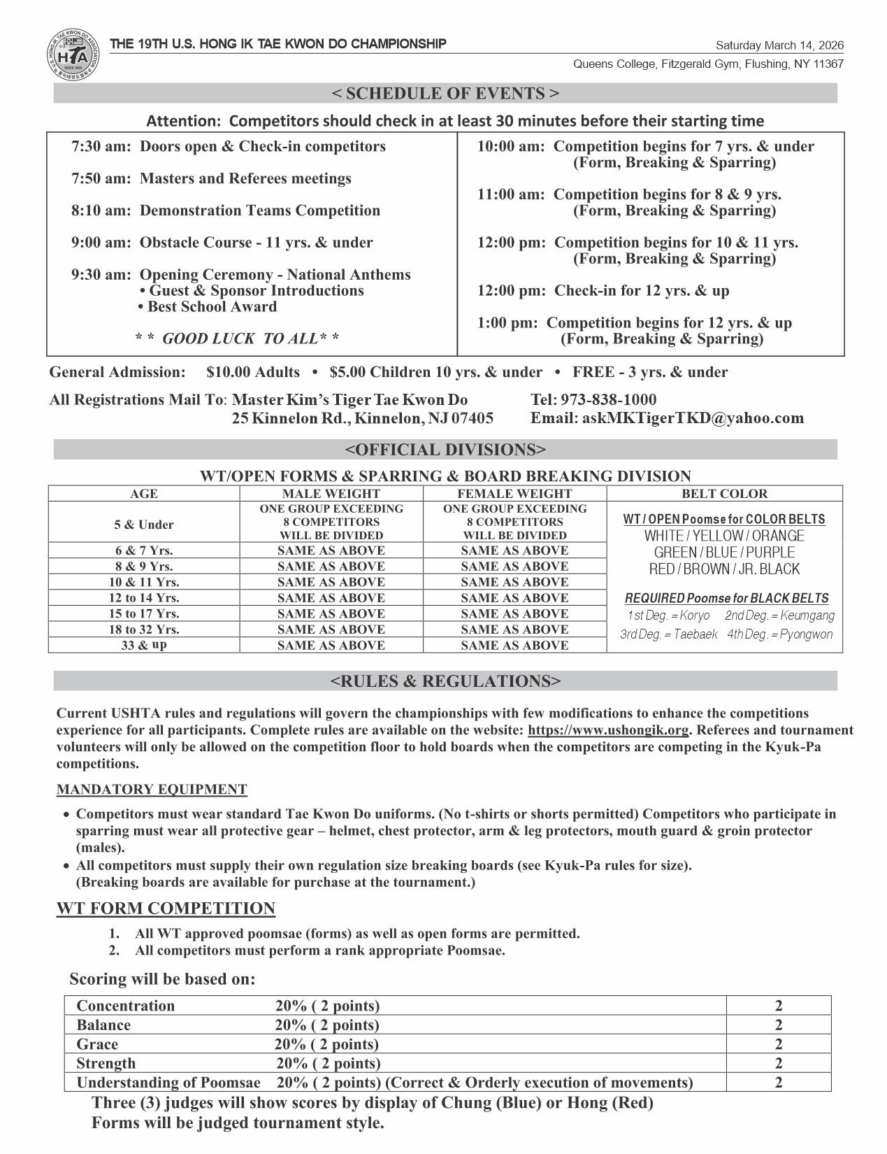 askmktigertkd@yahoo.com or 1-973-838-1000